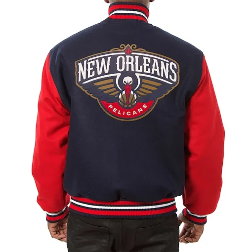 New Orleans Pelicans Navy Blue and Red Varsity Jacket
