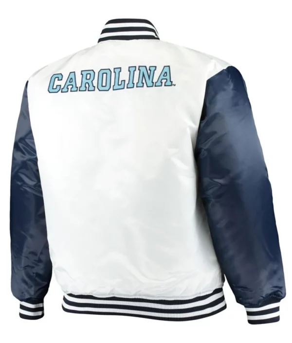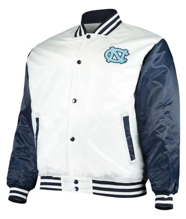 White/Navy North Carolina Tar Heels Varsity Satin Jacket